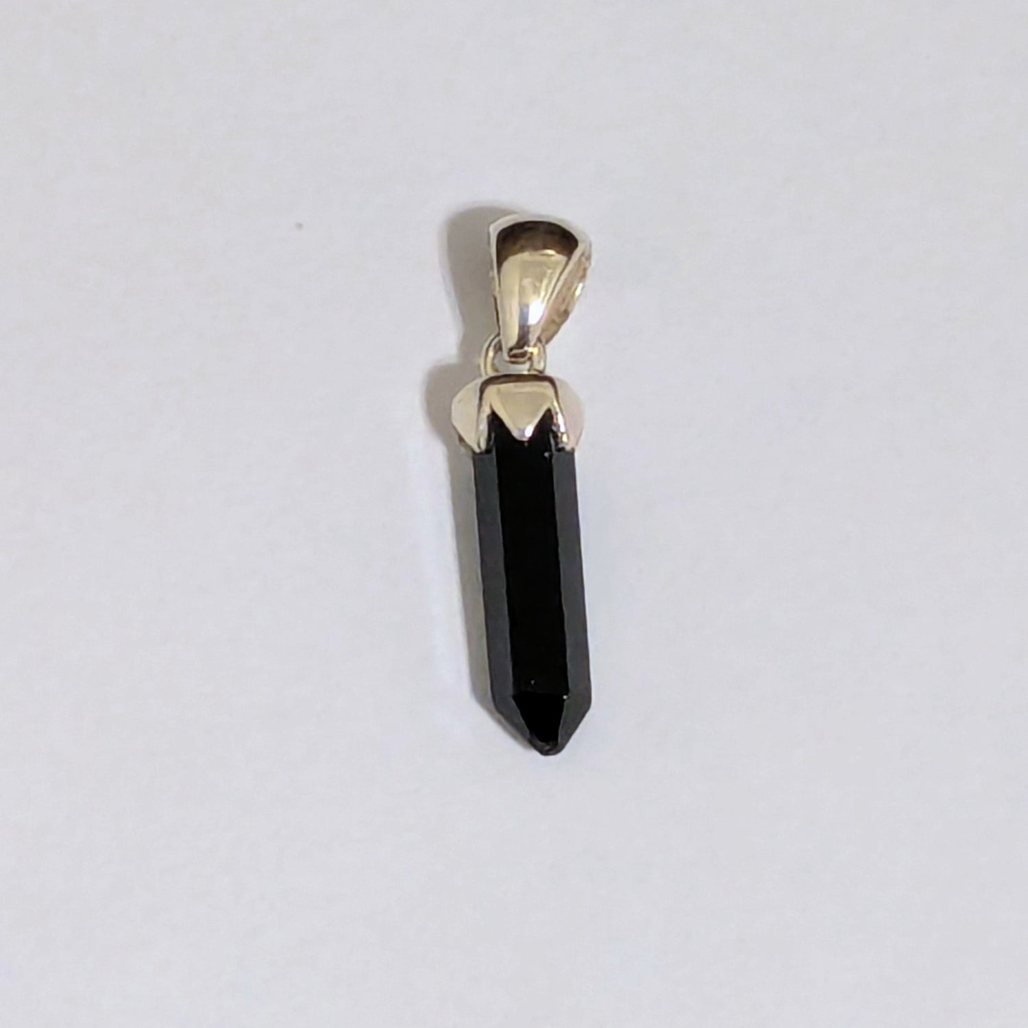 Dainty Black Tourmaline Point Pendant in Sterling Silver