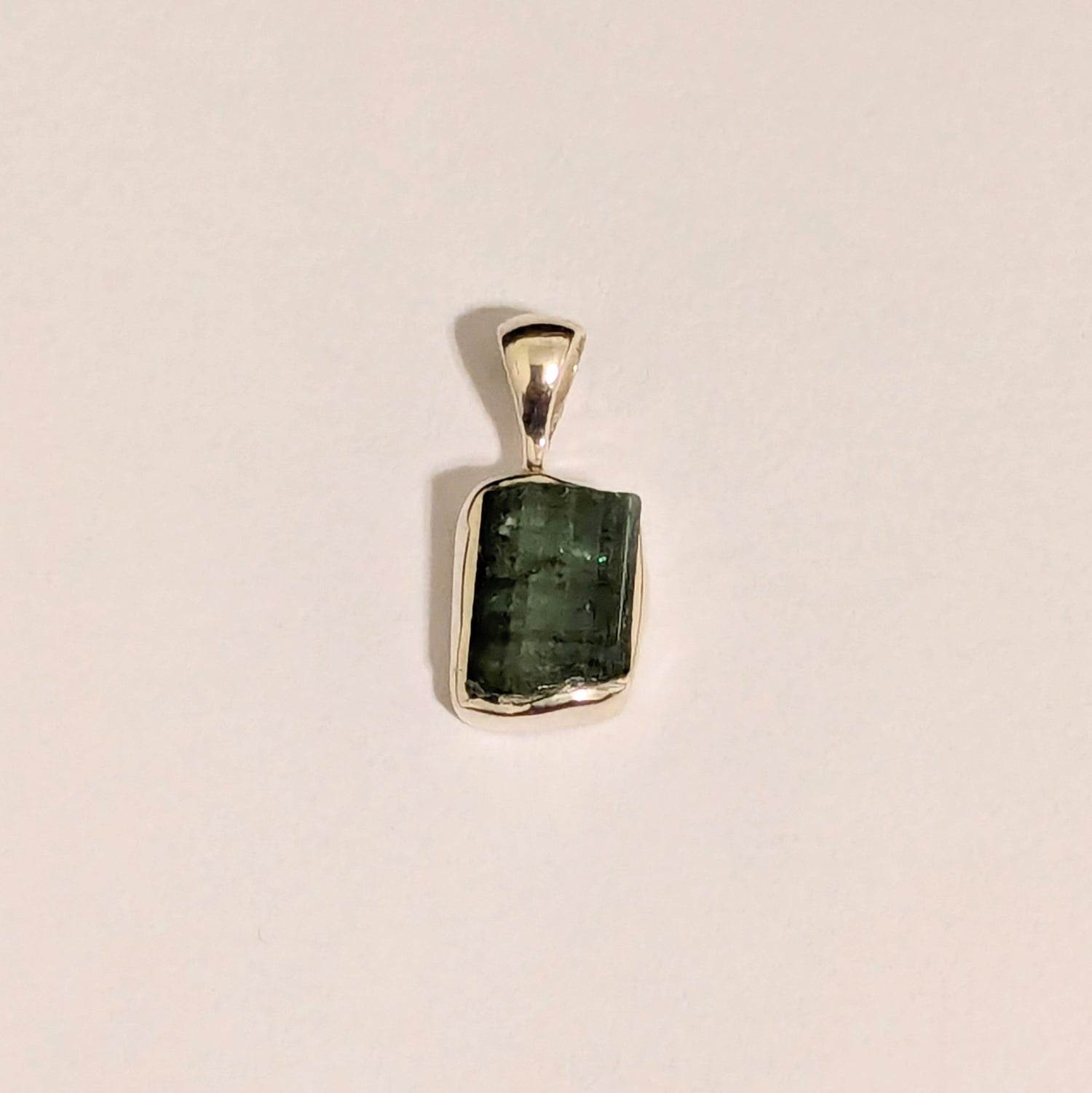 Rough Green Tourmaline Pendant in Sterling Silver