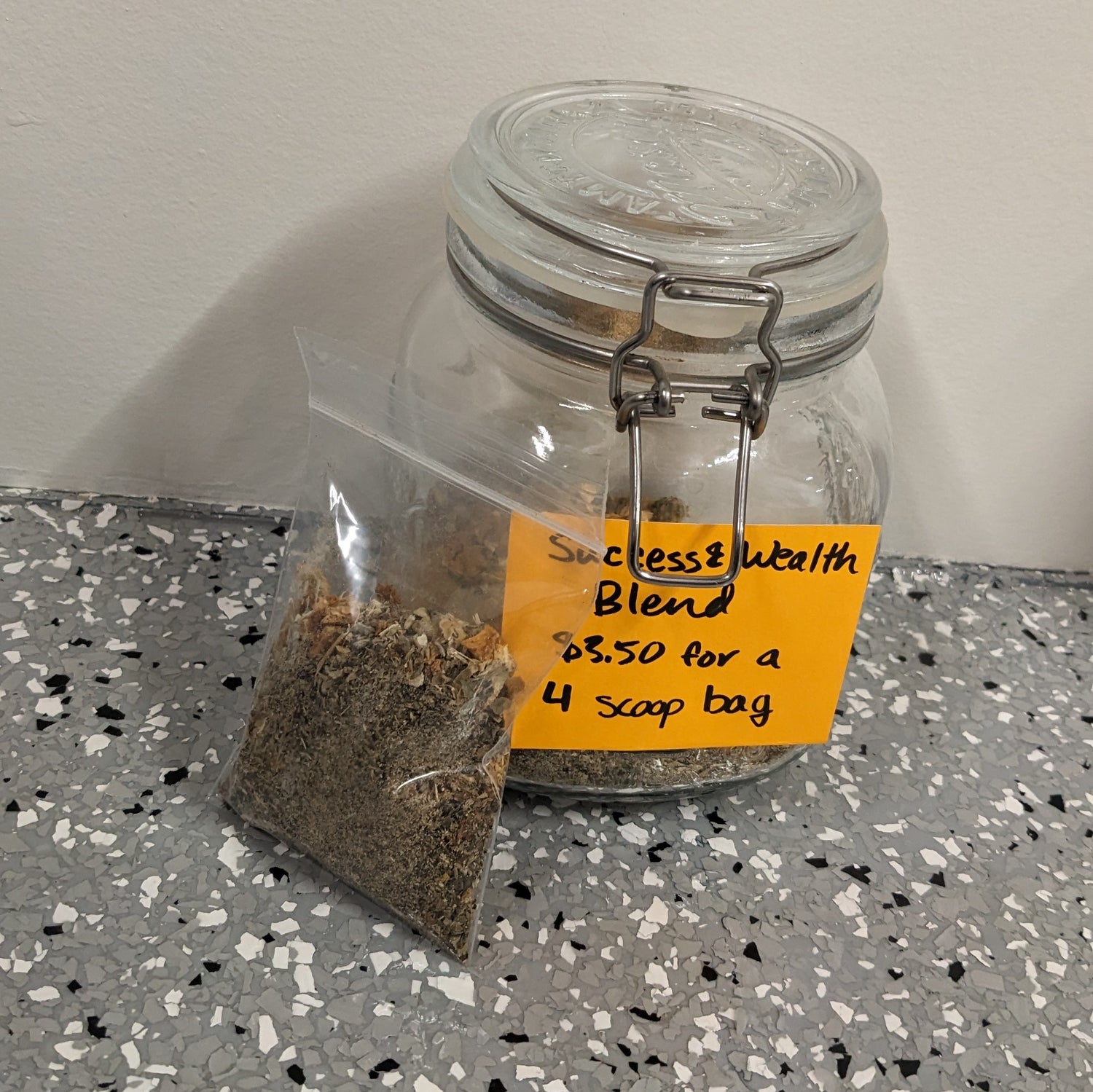 Wealth and Success loose leaf incense blend made by Utah artist Natalie Spendlove. Sold in 4 tablespoon increments.